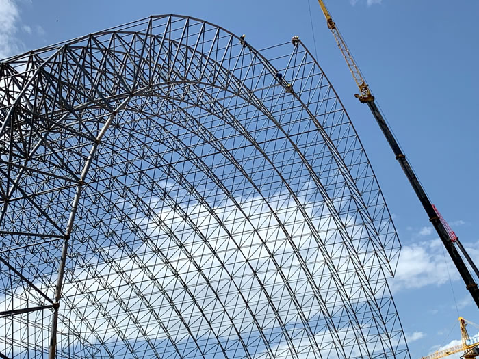 (2)网架加工前应对现场尺寸进行复测,确认无误后方可进行加工、安装;网架制作、运输、安装应遵守《空间网格结构技术规程》JGJ7-2010、《钢网架河间螺栓球节点》JG/T 10-2009、《钢网架河间螺栓球节点用高强度螺栓》 GB/T 16939-2016、《河间钢结构河间工程河间施工规范》 GB50755-2012、《河间钢结构河间工程河间施工质量验收标准》 GB50205-2020。